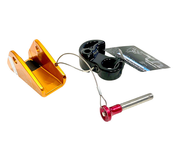 Thanks to the separable design of the clamp, it can be opened and placed on the load-bearing equipment, e.g. on a torn energy absorber. The casualty can then be lifted by the rescue clamp and released from the lanyard.