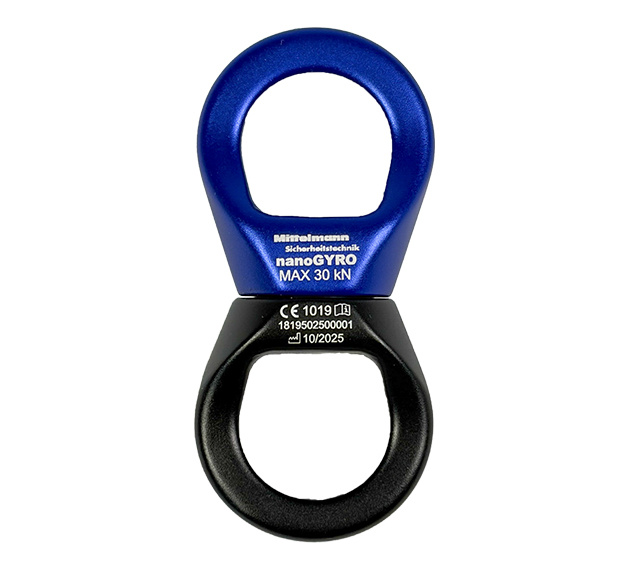 nanoGYRO ist unser kompaktester und zugleich hochbelastbarer Wirbel (Swivel) zur Vermeidung von Seilverdrillungen und zur optimalen Ausrichtung von Lasten. Sie verbindet zwei Anlenkpunkte drehbar miteinander und sorgt so für maximale Beweglichkeit und Kontrolle in anspruchsvollen Seil-, Rettungs- und Rigging-Systemen. Mit einer Bruchlast von 30 kN und einer präzisen, spielfreien Lagerung gewährleistet die nanoGYRO eine zuverlässige und sichere Drehbewegung auch unter Last. Das Gehäuse aus hochfestem Aluminium bietet ein hervorragendes Verhältnis von Gewicht zu Stabilität.
